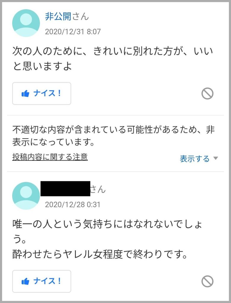 など。質問者にとっては結構残酷な現実を突きつけられてしまいます。